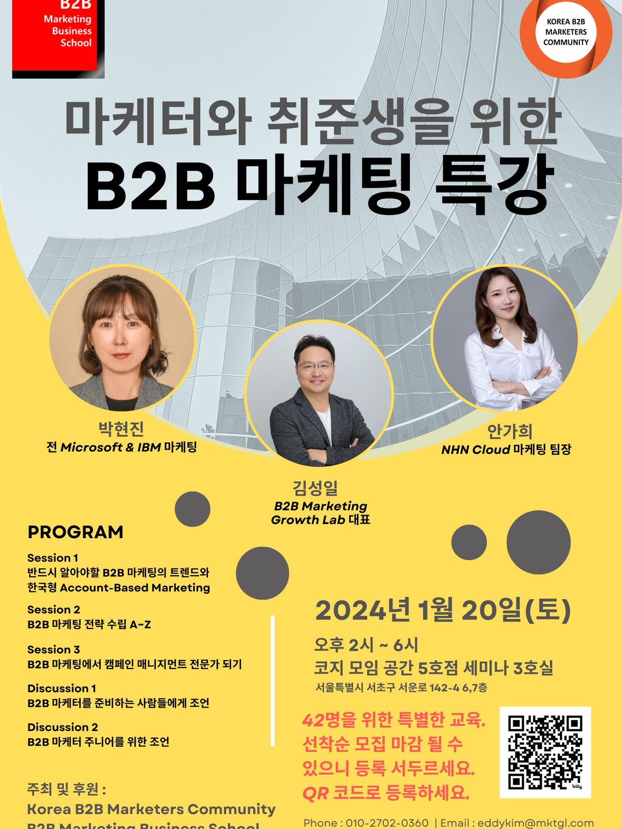 마케터와 마케터 준비생을 위한 <B2B 마케팅 특강>을 진행합니다!